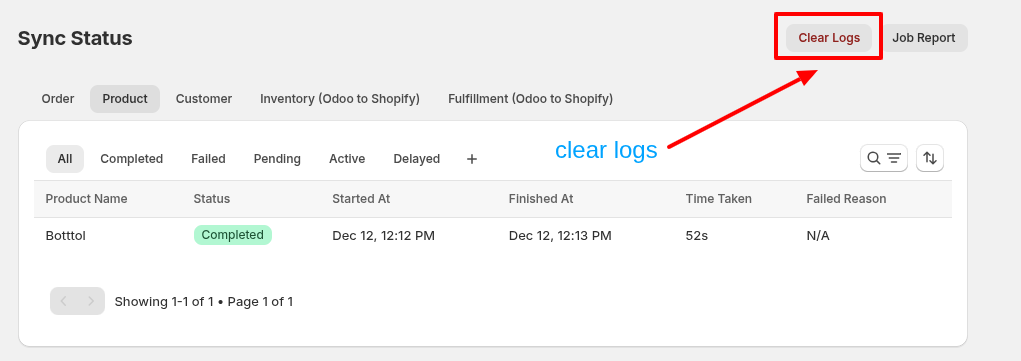 - The "All" tab shows all logs regardless of status